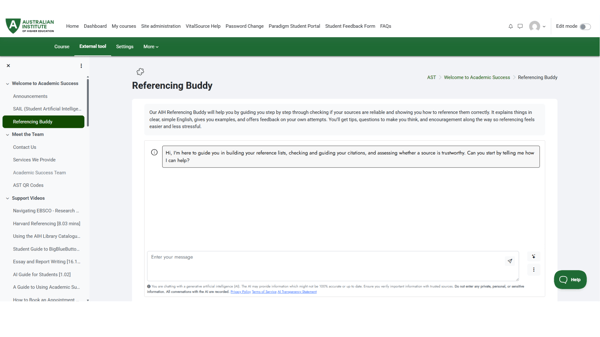 You’ll find Referencing Buddy on the Moodle Academic Success Team (AST) page.